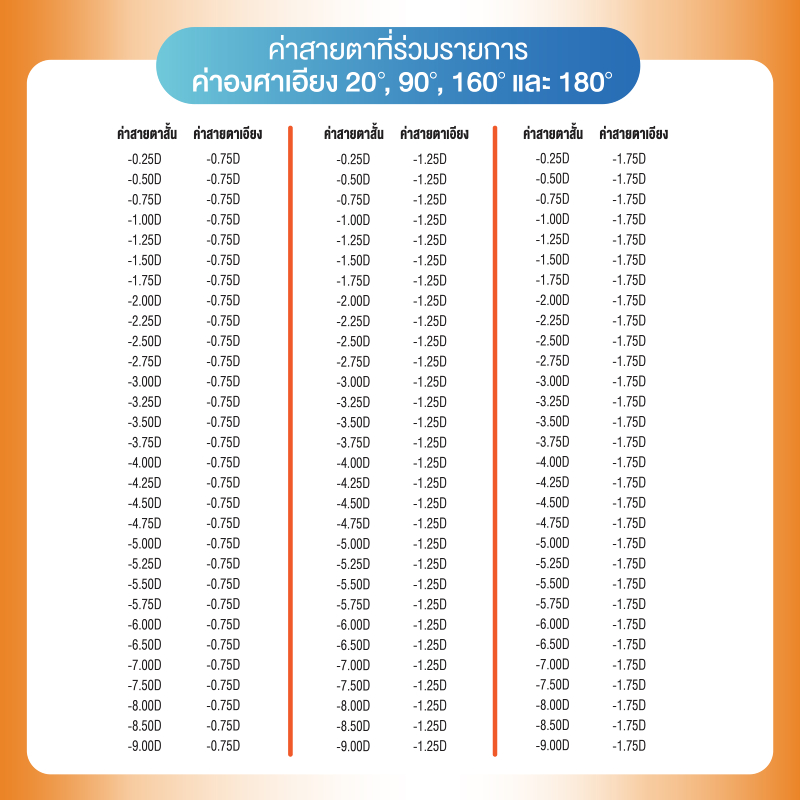 *เฉพาะค่าสายตาที่ร่วมรายการเท่านั้น