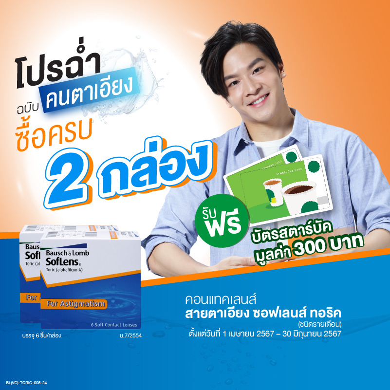 รับฟรี! บัตรสตาร์บัค มูลค่า 300 บาท เมื่อซื้อคอนแทคเลนส์สายตาเอียง บอช แอนด์ ลอมบ์ ซอฟเลนส์ ทอริค (รายเดือน) บรรจุ 6 ชิ้น จำนวน 2 กล่อง